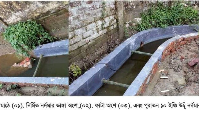 জানা যায়, কয়েক মাস আগে স্থানীয় মঙ্গলচন্ডী নিশিকান্ত সরকারী মডেল উচ্চ বিদ্যালয় মাঠে একটি ফুটবল খেলার পুরস্কার বিতরণী অনুষ্টানে আসেন স্থানীয় সংসদ সদস্য মোকাব্বির খান। তখন মাঠের খেলোয়াড়গণ সংসদ সদস্যকে মাঠের উত্তর পাশের পুরাতন নর্দমার সাথে সংযুক্ত করে নতুন একটি নর্দমা নির্মান করার আবেদন করেন। সংসদ সদস্য তাৎক্ষণিক মাঠে ৩লক্ষ টাকা বরাদ্ধের কথা বলে যান। এরপর কাজ এর অর্ডার হলে মাঠের পূর্ব প্রান্ত থেকে পশ্চিম প্রান্ত পর্যন্ত ৫ ইঞ্চি পুরত্বের একটি নর্দমা স্থাপন শেষ হয়। নর্দমার নির্মান কাজ শেষ হওয়ার সাথে সাথে গত ১২ মে বৃষ্টিপাত শুরু হলে পশ্চিমের অংশে প্রায় ২০ ফুট নর্দমা ভেঙ্গে গিয়ে পানিতে তলিয়ে যায়। তাছাড়া নর্দমার পূর্ব পাশের কর্ণারের অংশে তিনটি স্থানে ফাটল দেখা দিয়েছে।