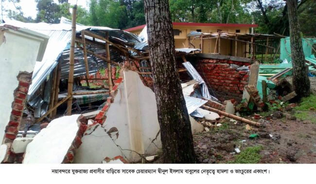 জানা যায়, গত ২৭ এপ্রিল রাতে নয়াবন্দর বাজারের জহিরপুর গ্রামে সাবেক চেয়ারম্যান প্রভাবশালী দ্বীনুল ইসলাম বাবুল ও তার সহযোগী আজিজুর রাজা চৌধুরী ওরফে আনা, শাহনাজ চৌধুরী, সৈয়দ এনামুল হক, সুজেল আহম্দ ও রেজা রাজা চৌধুরীর নেতৃত্বে শত শত লোক জড়ো হয়ে যুক্তরাজ্য প্রবাসী শেখ আব্দুল হক তারেক মিয়া ও মোঃ সিরাতুল আম্বিয়া টিপুর মৌরসী মালিকানাধীন বাগান বাড়ীতে ৪টি ঘর ও সীমানা প্রাচীর এবং সংশ্লিষ্ট কাজে নিয়োজিত টিকাদারের পৃথক ১টি বাড়িতে ট্রাকযোগে এক্সেভেটর মেশিন দিয়ে হামলা চালিয়ে ৫টি ঘর ভাংচুর করা হয়। এসময় দ্বীনুল ইসলাম বাবুলের নেতৃত্বে শত শত লোকজন জড়ো হয়ে ”লিল্লাহে তাক্ববির,আল্লাহু আকবার’ ধ্বনি দিয়ে ঘরবাড়ি সীমানা প্রাচীর ভাংচুর করে প্রায় ১কোটি বিশ লক্ষ টাকার ক্ষতি করেন। ঘটনার পর ২৯ এপ্রিল বাড়ির মালিক সিরাতুল আম্বিয়া টিপু বাদী হয়ে সাবেক চেয়ারম্যান দ্বীনুল ইসলাম বাবুলকে ১নম্বর আসামী করে ২৮ জনকে এজাহারভূক্ত আসামি দিয়ে থানায় একটি মামলা (নং-১৩) দায়ের করেন। মামলার পর আসামিরা এলাকা থেকে গা ঢাকা দেন। কিন্তু ইদানিং আসামিরা কোর্ট থেকে জামিনে ছাড়া পেয়ে এলাকায় এসে মামলার বাদীকে মামলা তুলে নেওয়ার জন্য হুমকি দিচ্ছে। তাছাড়া মামলার স্বাক্ষী ও বাড়ির সীমানা প্রাচীর নির্মাণে সংশ্লিষ্ট টিকাদারকে এলাকা ছাড়ার জন্য হুমকি দিচ্ছেন। অন্যদিকে মামলার আসামি আজিজুর রাজা চৌধুরী আনা, আব্দুস সামাদ রানা মিয়া এবং নুরুল ইসলাম গোলাব আলী জামিনে মুক্তি পেয়ে এসে ভূমির মালিক সিরাতুল আম্বিয়া টিপুর বিরুদ্ধে কোর্টে ৭ধারায়পৃথক ৩টি মামলা দায়ের করেছেন।