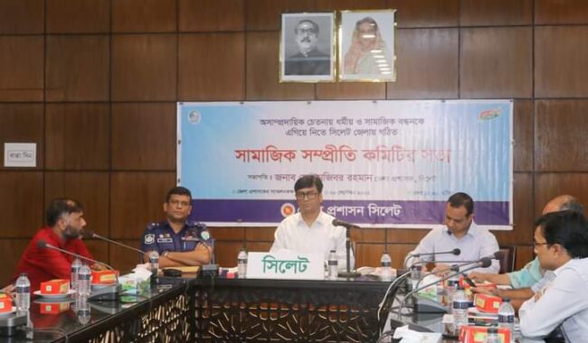 অসাম্প্রদায়িক চেতনায় ধর্মীয় ও সামাজিক বন্ধনকে এগিয়ে নিতে আগামী শনিবার সিলেটে সামাজিক সম্প্রীতি সমাবেশ অনুষ্ঠিত হবে। ওই দিন সকাল ১১টায় সিলেট জেলা পরিষদ মিলনায়তনে আয়োজিত সমাবেশে প্রধান অতিথি থাকবেন সিলেটের বিভাগীয় কমিশনার ড. মুহাম্মদ মোশাররফ হোসেন। এছাড়াও সকল ধর্মের নেতৃবৃন্দসহ সর্বস্তরের মানুষ অংশ নেবেন । মঙ্গলবার দুপুরে জেলা প্রশাসনের সম্মেলন কক্ষে অনুষ্ঠিত সিলেট জেলা সামাজিক সম্প্রীতি কমিটির সভায় এ সমাবেশের সিদ্ধান্ত নেওয়া হয়।