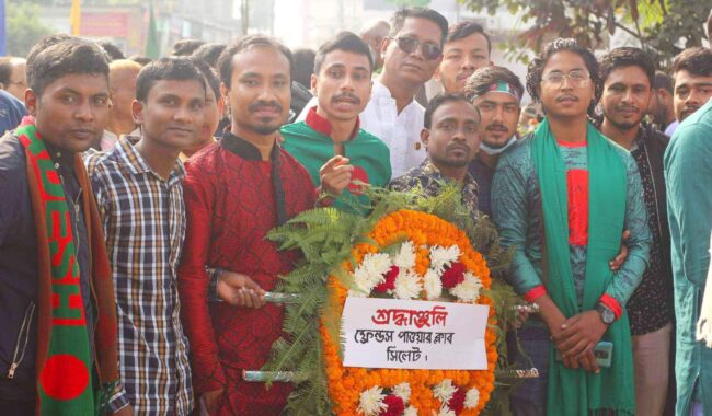 সিলেটের বৃহত্তর সামাজিক, সাংস্কৃতিক ও ক্রীড়ামূলক সংগঠন ফ্রেন্ডস পাওয়ার ক্লাব প্রতিবারের ন্যায় এবারো মহান বিজয় দিবসে বীর শহীদদের প্রতি শ্রদ্ধাঞ্জলী প্রদান করে নগরীর কেন্দ্রীয় শহীদ মিনারে।