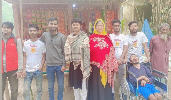 সংগঠনটি দেশের বিভিন্ন প্রান্তে এক ঝাঁক উদ্যমী তরুণ মানবিক ও দানবীর মনন চিত্তের মানুষ নিয়ে, গরীব,অসহায় ও প্রতিবন্ধীদের মধ্যে বাড়িয়ে দিচ্ছেন মানবিক সাহায্যের হাত। এ ধারাহিকতাকে সমন্বয়ে রাখতে শনিবার (১৪/১/২০২৩) ঢাকা জেলার ধামরাই যাদবপুর ইউনিয়নে দুপুর ১.০০ টায় একই পরিবারের প্রতিবন্ধী দুই ভাই বোন, মোঃ সুমন ও মোছাঃ শামীমা কে ”আর্ন এ্যান্ড লিভ এর পক্ষ সে সময়; হাজী হাবিব আলী, মায়ারুন্নেছা ও ফরিদা ইয়াসমিন জেসি (আর্ন এ্যান্ড লিভ এর চেয়ারপারসন) এর সার্বিক সহযোগিতায় ঐ পরিবারে একটি মুদি মাইলের দোকান প্রদান করা হয়। প্রতিবেশি ও গ্রামের লোক সমাচারের তথ্য সূত্র থেকে জানাগেছে, প্রতিবন্ধী সুমন ও শামীমার পিতা একজন ক্ষুদ্র চাউল ব্যাবসায়ী। ঐ পরিবারের কর্তা ( সুমন ও শামীমার বাবা) তার সংসারে পাঁচজন সদস্যের আহার যোগার করতে গিয়ে প্রতিনিয়ত চরম বিপাকে পড়ছিলেন। এক কথায় নুন আনতে পান্তা ফুরানো সংসারে যা হয় আর কি,