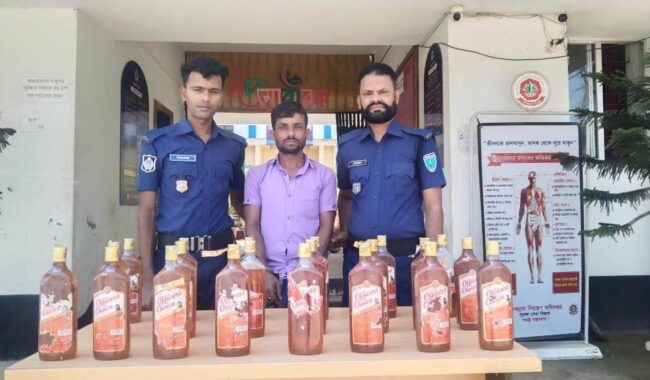 পুলিশ সূত্রে জানা যায়, ২৩ এপ্রিল (রবিবার) রাত ১০ টার সময় গোপন সংবাদের ভিত্তিতে কানাইঘাট থানাধীন সুরইঘাট বাজার এলাকায় মাদক বিরোধী অভিযান পরিচালনা করে কানাইঘাট থানা পুলিশ কর্তৃক কানাইঘাট কালিনগরের নাহিদ আহমদের ছেলে রুবেল আহমদ (২৯)’কে ২১ বোতল ভারতীয় অফিসার্স চয়েস মদ সহ হাতেনাতে গ্রেফতার করা হয়েছে।