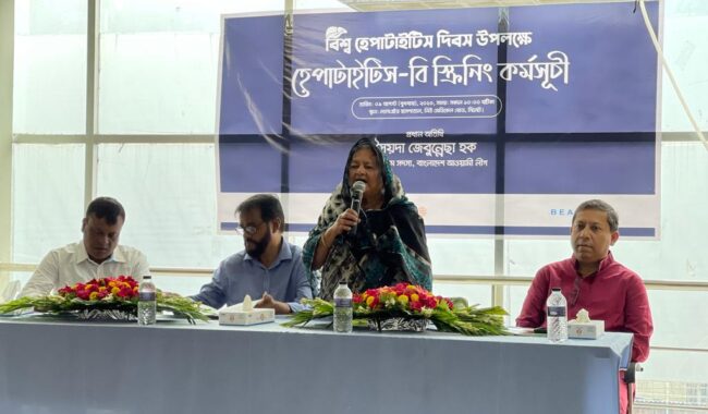সৈয়দা জেবুন্নেছা হক বিশ্ব হেপাটাইটিস বি দিবস উপলক্ষে হেপাটাইটিস বি স্ক্রিনিং কর্মসূচির উদ্বোধন কালে প্রধান অতিথির বক্তব্যে এসব কথা বলেন।বুধবার সকালে জালালাবাদ লিভার ট্রাস্টের উদ্যোগে এবং সিলেট অনলাইন প্রেসক্লাব ও বিকন ফার্মাসিটিকিলস এর সহযোগিতায় নগরীর কাজলশাহে স্থানীয় সংবাদ কর্মীদের জন্য হেপাটাইটিস বি স্ক্রিনিং কর্মসূচির আয়োজন করা হয়।