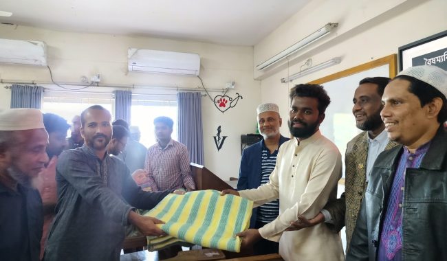 সিলেট কৃষি বিশ্ববিদ্যালয়ে (সিকৃবি) কর্মচারী ও ক্যাম্পাসের আশেপাশের অসহায় মানুষদের মাঝে শীতবস্ত্র বিতরণ করলো বিশ্ববিদ্যালয়ের বৈষম্যবিরোধী ছাত্র আন্দোলন ও নাগরিক কমিটির নেতৃবৃন্দ।