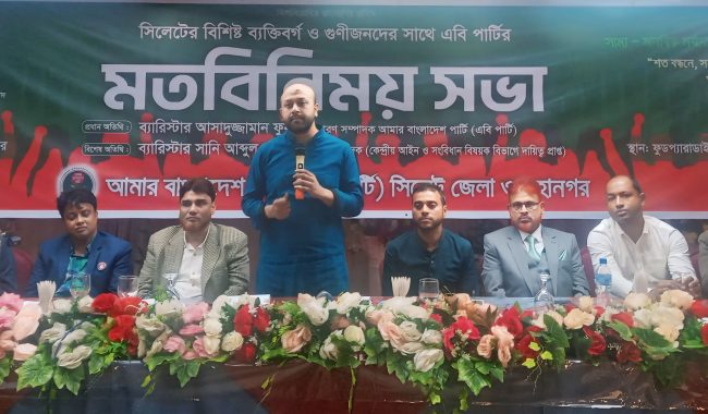 ১৬ ফেব্রুয়ারি (রবিবার) সন্ধ্যায় সিলেট নগরীর এক অভিজাত রেস্টুরেন্ট ও পার্টি সেন্টারের মিলনায়তনে সিলেটের বিশিষ্ট ব্যক্তিবর্গ ও গুণীজনদের সাথে এক মতবিনিময় সভায় প্রধান অতিথির বক্তব্যে তিনি এসব কথা বলেন।জেলা ও নগর শাখা এবি পার্টি আয়োজিত সভায় সভাপতিত্ব করেন কেন্দ্রীয় সাংগঠনিক সম্পাদক ও মহানগর সভাপতি ওমর ফারুক।