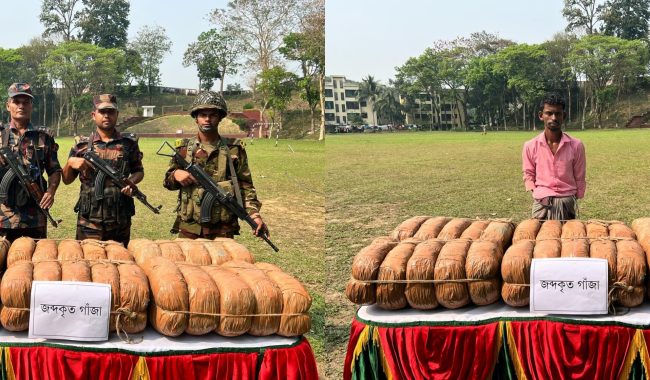 সেনা সূত্রে জানা যায়, ক্যাপ্টেন আফ্রিদ এর নেতৃত্বে সিলেট-তামাবিল মহাসড়কে চেকপোস্ট স্থাপন করে তল্লাশি কার্যক্রম পরিচালনা করে ৬২ কেজি গাঁজা, ০১ টি ডিআই পিকআপ ও কাজিম আহমদ নামের ০১ জনকে আটক করা হয়েছে। আটককৃত ব্যক্তি জৈন্তাপুর উপজেলার দরবস্ত এলাকার মৃত শহীদ মিয়ার পুত্র। ঘটনাস্থল হতে গাঁজার মালিক গাড়ি হতে পালিয়ে যাওয়ায় তাকে আটক করা সম্ভব হয়নি। সেনা হেফাজতে থাকার পর শুক্রবার দুপুরে আটককৃত ব্যক্তিকে জব্দকৃত গাঁজা ও ডিআই পিকআপসহ সিলেট ব্যাটালিয়ন (৪৮ বিজিবি) এর কাছে হস্তান্তর করা হয়েছে।