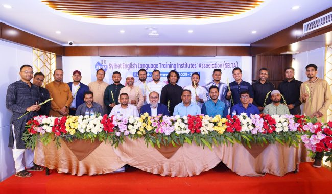 সিলেটে Sylhet English Language Training Institutes Association (SELTA)-এর ২০২৫-২০২৭ মেয়াদের নবনির্বাচিত কার্যনির্বাহী কমিটির অভিষেক অনুষ্ঠান গত ১৬ মে, শুক্রবার, সিলেট সিটির হোটেল ক্রাউন পার্কে সফলভাবে সম্পন্ন হয়েছে।