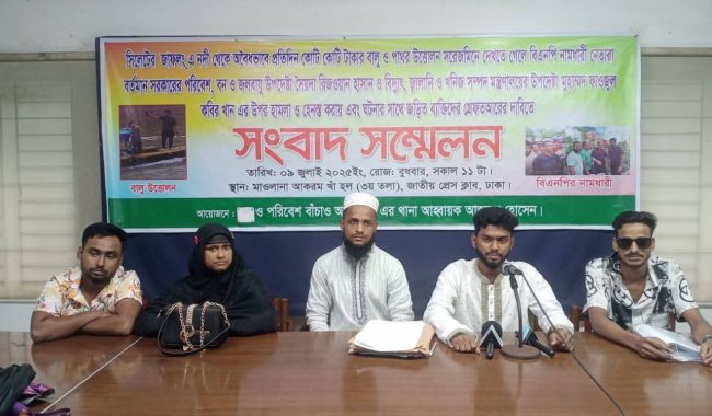 আজমল আরও বলেন, প্রতিবাদকারী ৩৪ জনের নাম উল্লেখ করে এবং প্রায় ১০০-১৫০ জনকে অজ্ঞাতপরিচয়ে রেখে তাদের বিরুদ্ধে উল্টোভাবে চাঁদাবাজির মিথ্যা মামলা দায়ের করা হয়েছে। এই মামলা প্রত্যাহার এবং ইতিমধ্যে গ্রেপ্তারকৃতদের আগামী ৪৮ ঘন্টার মধ্যে মুক্তি দাবি করেন তিনি। পাশাপাশি, পরিবেশ উপদেষ্টার গাড়ি অবরোধের ঘটনায় জড়িতদের দ্রুত গ্রেফতার, সারি-১ ও লেঙ্গুড়া বালুমহালের ইজারা অবিলম্বে বাতিল এবং অবৈধ বালু উত্তোলন বন্ধের জোর দাবি জানান তিনি।