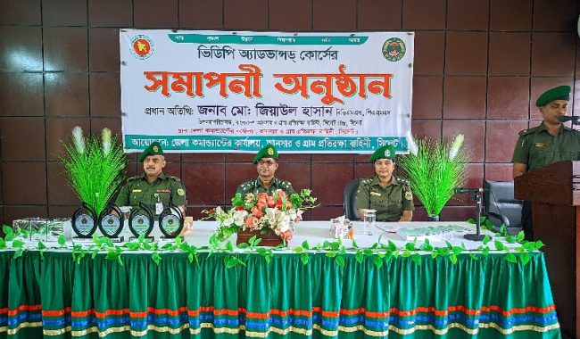 দেশের সার্বিক নিরাপত্তা ও আর্থ-সামাজিক উন্নয়নে প্রশিক্ষিত আনসার ও গ্রাম প্রতিরক্ষা বাহিনীর সদস্যদের গুরুত্বপূর্ণ ভূমিকা পালনের উপর জোর দিয়েছেন বাংলাদেশ আনসার ও ভিডিপি, সিলেট রেঞ্জের উপমহাপরিচালক মোঃ জিয়াউল হাসান, বিভিএমএস, পিএএমএস। ২৪ আগস্ট ২০২৫ তারিখে আনসার ও ভিডিপি কার্যালয়, সিলেট জেলায় অনুষ্ঠিত ভিডিপি অ্যাডভান্সড কোর্সের সমাপনী অনুষ্ঠানে প্রধান অতিথির বক্তব্যে তিনি এই আহ্বান জানান। তার বক্তব্যে উঠে আসে বাহিনীর সুদূরপ্রসারী লক্ষ্য কেবল আইন-শৃঙ্খলা রক্ষা নয়, বরং দেশপ্রেম, সততা ও শৃঙ্খলাবোধের মধ্য দিয়ে প্রতিটি সদস্যকে একজন স্বাবলম্বী এবং জনসম্পদে পরিণত করে তোলা।