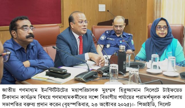 ভাইরাস বা ব্যাকটেরিয়াজনিত যে কোন সংক্রামক রোগ শিশুদের উপর স্থায়ী বা দীর্ঘমেয়াদী প্রভাব রাখে, এমনকি শিশুদের মৃত্যুও হতে পারে। টিকা হচ্ছে এ ধরণের রোগের বিরুদ্ধে সুরক্ষা ব্যবস্থা।টিকা গ্রহণের মাধ্যমে আজকের শিশু হবে ভবিষ্যতের সুস্থ নাগরিক। বৃহস্পতিবার (২৩ অক্টোবর) সিলেট বিভাগীয় কমিশনার কার্যালয়ের সম্মেলনকক্ষে টাইফয়েড টিকাদান কার্যক্রম বিষয়ে গণমাধ্যমকর্মীদের সঙ্গে বিভাগীয় পর্যায়ের পরামর্শমূলক কর্মশালায় জাতীয় গণমাধ্যম ইনস্টিটিউটের মহাপরিচালক মুহম্মদ হিরুজ্জামান সভাপতির বক্তব্যে এসব কথা বলেন।