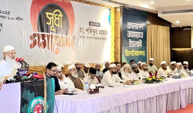বৃহস্পতিবার (৬ নভেম্বর) সন্ধ্যা সাড়ে ৬টায় সিলেট নগরীর আমান উল্লাহ কনভেশন হলে সিলেট মহানগর জামায়াতে ইসলামী আয়োজিত সুধী সমাবেশে প্রধান অতিথির বক্তব্যে তিনি এসব কথা বলেন।