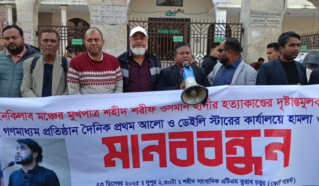 তারা বলেন, প্রথম আলো ও ডেইলি স্টার পত্রিকার প্রধান কার্যালয়ে হামলা, অগ্নিসংযোগ ও লুটপাটের ঘটনা ঘটে। শুধু ঢাকা নয় সিলেটেও প্রথম আলো ও ডেইলি স্টারে হামলার ঘটনাও ঘটেছে। হামলা ও অগ্নিসংযোগ করে গণমাধ্যমের কণ্ঠ রোধ করা যাবে না। জুলাই গণ-অভ্যুত্থানে প্রথম আলো ও ডেইলি স্টার প্রশংসনীয় ভূমিকা পালন করেছিল। পতিত আওয়ামী লীগ সরকার প্রথম আলোকে সরকারি দপ্তরে নিষিদ্ধ করেছিল। অথচ একটি উগ্রগোষ্ঠী দেশকে অস্থিতিশীল করার উদ্দেশ্যে মব সৃষ্টি করে এ ধরনের হামলা করে যাচ্ছে।