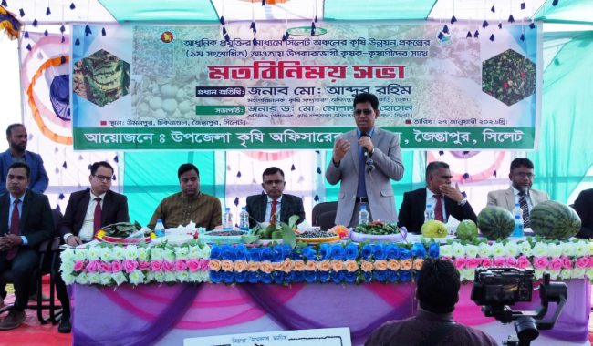 জৈন্তাপুরে আধুনিক কৃষি প্রযুক্তি সম্প্রসারণে উপকারভোগীদের সঙ্গে মতবিনিময় সভা