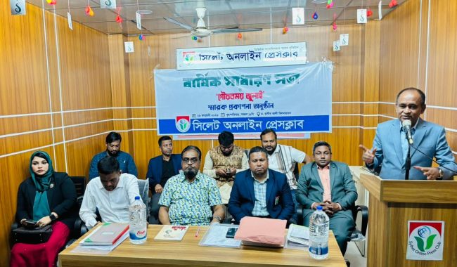সিলেট অনলাইন প্রেসক্লাবের ড. রাগীব আলী মিলনায়তনে ক্লাব সভাপতি মোহাম্মদ গোলজার আহমদ হেলালের সভাপতিত্বে সভা সঞ্চালনা করেন সাধারণ সম্পাদক এম. সাইফুর রহমান তালুকদার।