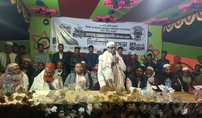 শুক্রবার ( ৩০ জানুয়ারী) রাতে গোয়াইনঘাট উপজেলার তারুখাল মাঠে স্থানীয় পশ্চিম জাফলং ইউনিয়ন ১১ দলীয় জোটের উদ্যোগ দাঁড়িপাল্লা মার্কার সমর্থনে আয়োজিত পথসভায় প্রধান অতিথি’র বক্তব্যে তিনি এসব কথা বলেন।