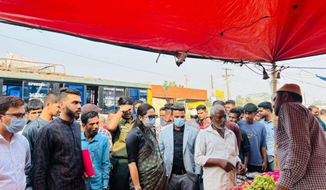 মোবাইল কোর্টের সময় কাঁচাবাজার, মাছ বাজার, ডিম ও মাংসের দোকান, মুদি দোকান এবং ফলের বাজার পরিদর্শন করা হয়। ব্যবসায়ীদের পণ্যের মূল্য তালিকা স্পষ্টভাবে প্রদর্শন এবং নির্ধারিত দামে পণ্য বিক্রির জন্য সতর্ক করা হয়। একই সঙ্গে ক্রেতাদের স্বার্থ সংরক্ষণ ও নিত্যপ্রয়োজনীয় পণ্যের দাম নিয়ন্ত্রণে রাখার বিষয়ে কঠোর নির্দেশনা দেওয়া হয়।