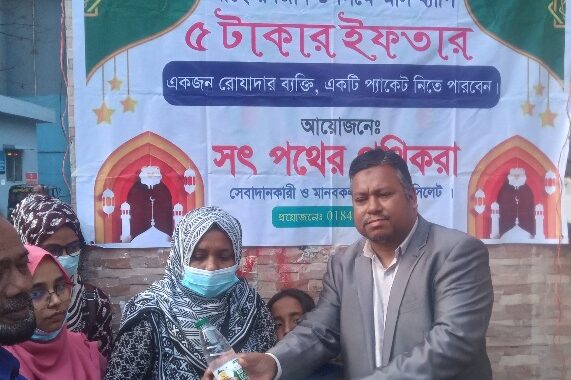 স্টাফ রিপোর্টার : রমজান মাসে সিলেটে প্রতিদিন মাত্র ৫ টাকায় ইফতার তুলে দিচ্ছে স্বেচ্ছাসেবী সংগঠন ‘সৎ পথের পথিকরা সেবাদানকারী ও মানবকল্যাণ সংগঠন’। নগরীর বিভিন্ন পয়েন্ট ও হাসপাতালে নিম্ন আয়ের ও রোজাদার মানুষের আত্মসম্মান বজায় রেখে এই উদ্যোগ বাস্তবায়ন করা হচ্ছে। ইফতার আইটেমে নানা রকম খাবার ও অর্ধ লিটার বিশুদ্ধ পানি দেয়া হয়।