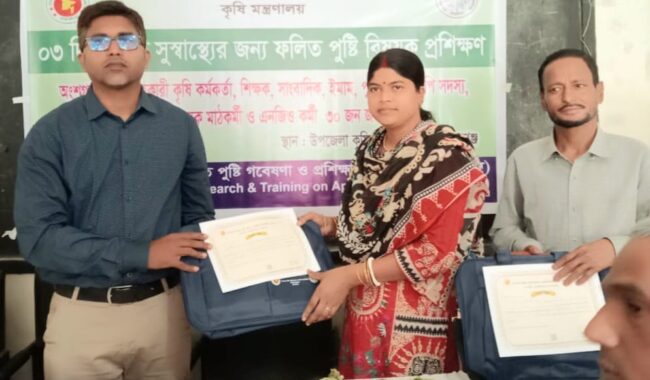তিনি আরও বলেন, সরকারের বিভিন্ন উদ্যোগের মূল লক্ষ্য হলো সমাজের সকল শ্রেণি-পেশার মানুষকে পুষ্টি সম্পর্কে সচেতন করে তোলা এবং আত্মনির্ভরশীল হওয়ার পথ দেখানো। প্রশিক্ষণে অর্জিত জ্ঞান কাজে লাগিয়ে নিজ পরিবারে পুষ্টিকর খাদ্য উৎপাদনের পাশাপাশি অন্যদেরও উদ্বুদ্ধ করার আহ্বান জানান তিনি।