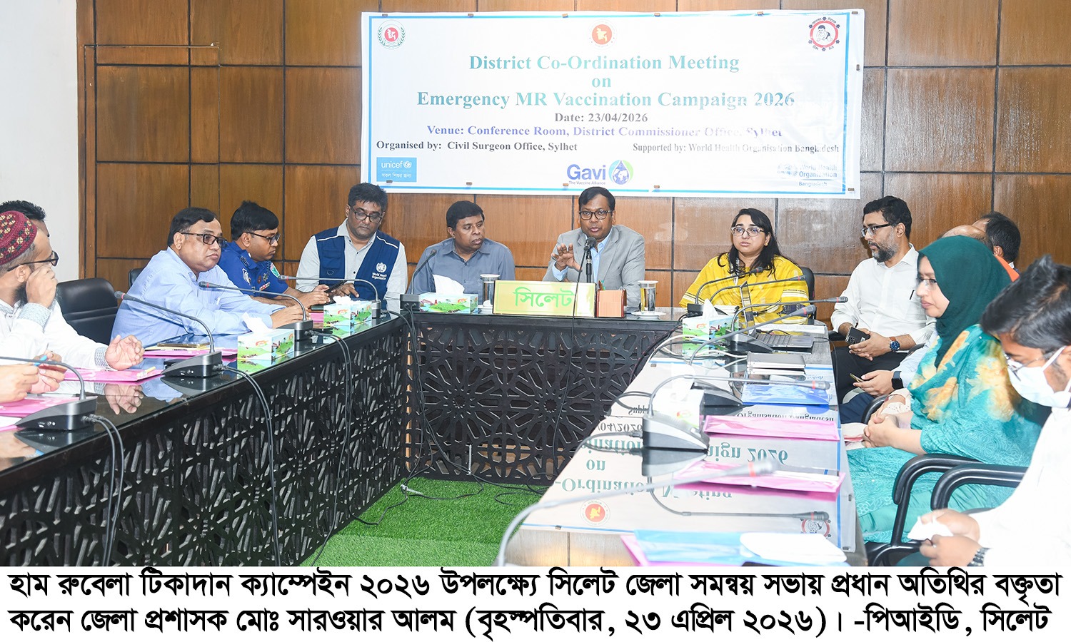 সিলেটে হাম-রুবেলা টিকাদান ক্যাম্পেইন উপলক্ষ্যে জেলা পর্যায়ে সমন্বয় সভা অনুষ্ঠিত হয়েছে। আজ (বৃহস্পতিবার) জেলা প্রশাসকের কার্যালয়ের সম্মেলন কক্ষে এ সভা বিস্তারিত...